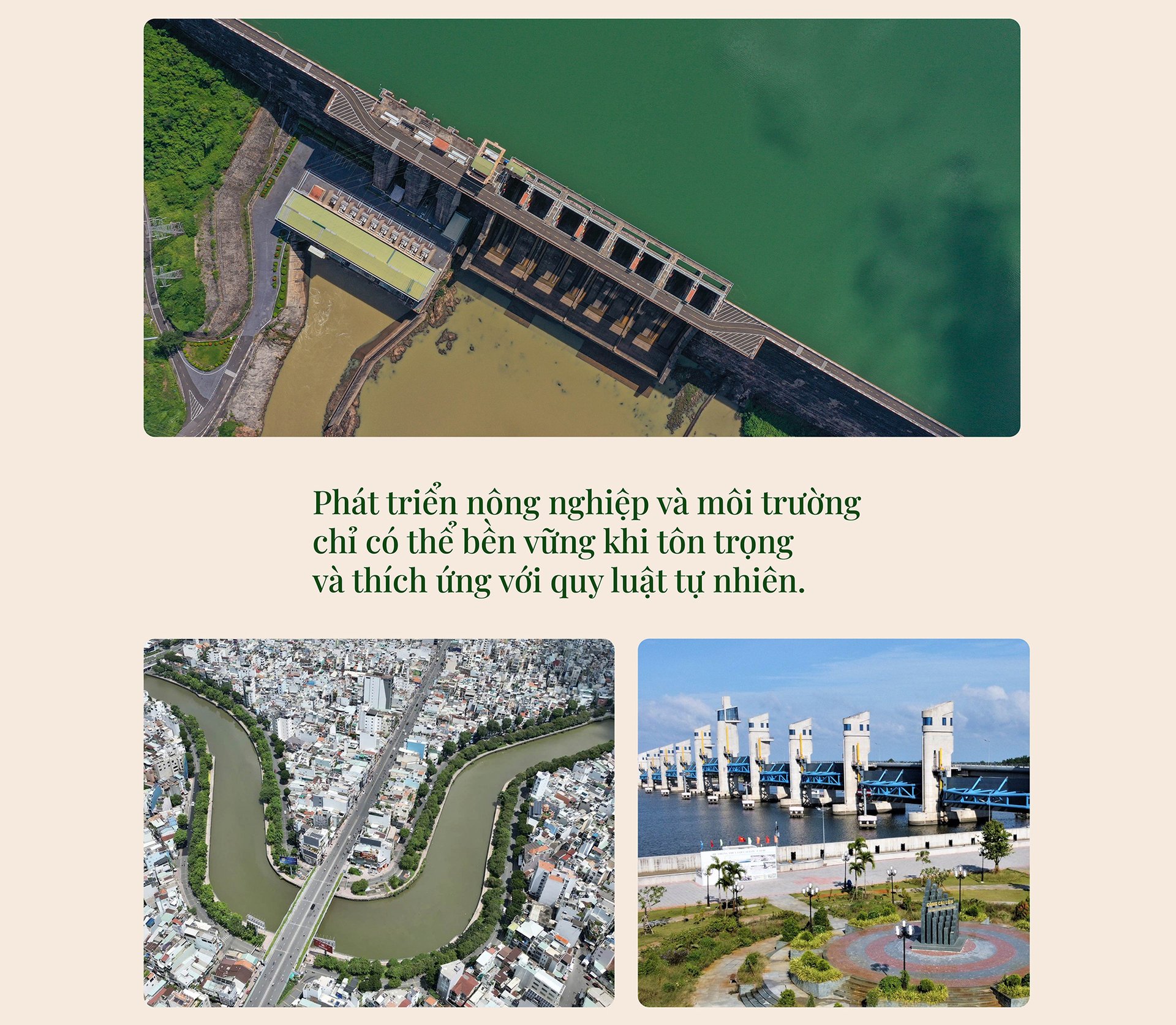 Thứ ba, Đột phá về đầu tư cơ sở hạ tầng để phục vụ nền nông nghiệp sinh thái, xanh, đồng thời nâng tầm quản trị hiệu quả về tài nguyên và môi trường, chủ động ứng phó với biến đổi khí hậu và phát triển kinh tế tuần hoàn. Ngành sẽ ưu tiên đầu tư các hệ thống thủy lợi đa mục tiêu, hồ chứa nước tái tạo, công trình ứng phó xâm nhập mặn, sạt lở và ngập úng, đồng thời phát triển các khu nông nghiệp sinh thái, khu công nghiệp carbon thấp, cảng biển xanh, logistic bền vững và khu bảo tồn thiên nhiên liên kết cộng đồng. Mọi hoạt động sản xuất, tiêu dùng và dịch vụ đều hướng tới vòng tuần hoàn khép kín, giảm thiểu rác thải, tái chế phụ phẩm, tận dụng năng lượng sinh học và tài nguyên tái tạo, bảo đảm hài hòa giữa lợi ích kinh tế và giá trị sinh thái.